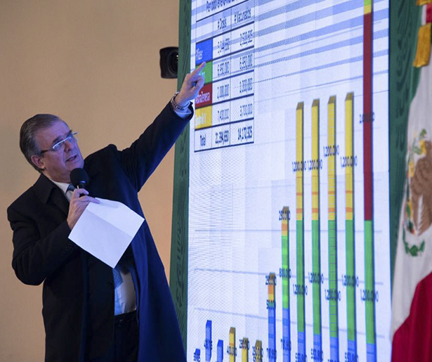 “Éstos son los números: 7 millones de dosis, con 3 millones 700 mil vacunados. Aparece en amarillo del 25 al 29 de enero, febrero se tienen 250 mil (vacunas) las cuatro semanas, y para el mes de marzo se tienen 1 millón 200 mil por semana”, comentó Ebrard.