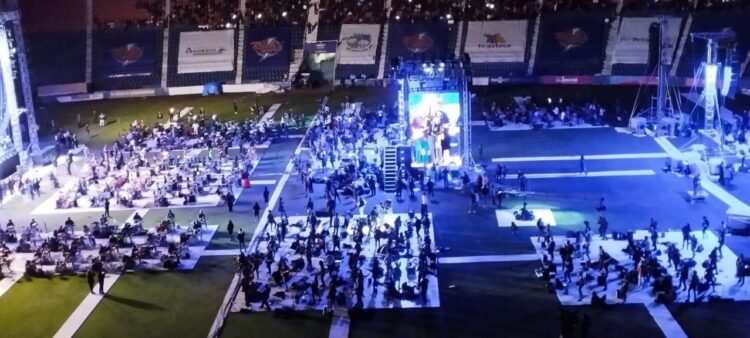 ¿Te imaginas a 777 músicos entre vocalistas, bateristas y guitarristas entrando a un mismo escenario ?Si esto fue posible hace unos días en el Estadio Azul, donde se congregaron para tocar y cantar éxitos de bandas emblemáticas como Queen, ACDC, Depeche Mode, Aerosmith, Van Halen, Twisted Sister, The Rolling Stones, entre otros; ante un público emocionado y conmovido.