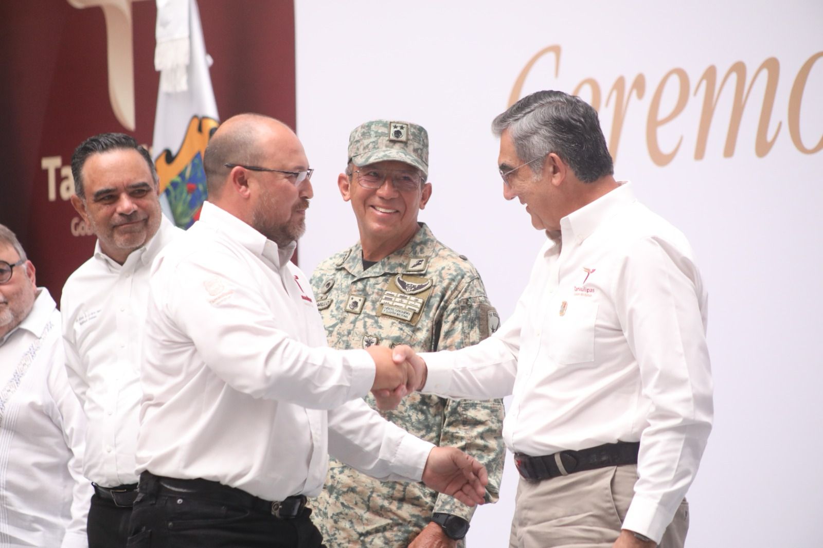 También acompañaron al gobernador en este evento: Hernán de la Garza Tamez, presidente del Supremo Tribunal de Justicia; Humberto Armando Prieto Herrera, presidente de la Junta de Gobierno del Congreso del Estado; Francisco Adrián Cruz Martínez, presidente de la Mesa Directiva del Congreso; Jesús Lavín Verástegui, secretario de Finanzas; el general Enrique García Jaramillo, comandante de la 48 Zona Militar; comisario Jesús Adolfo Amparán Hernández, coordinador de la Guardia Nacional en Tamaulipas, así como secretarias y secretarios del gabinete estatal e integrantes de la Mesa de Seguridad.