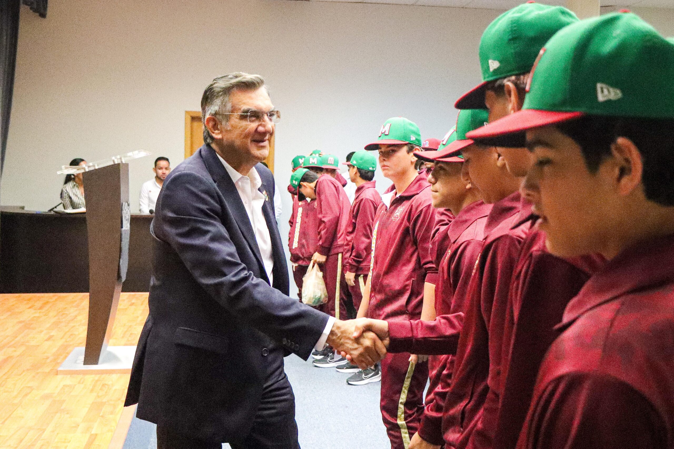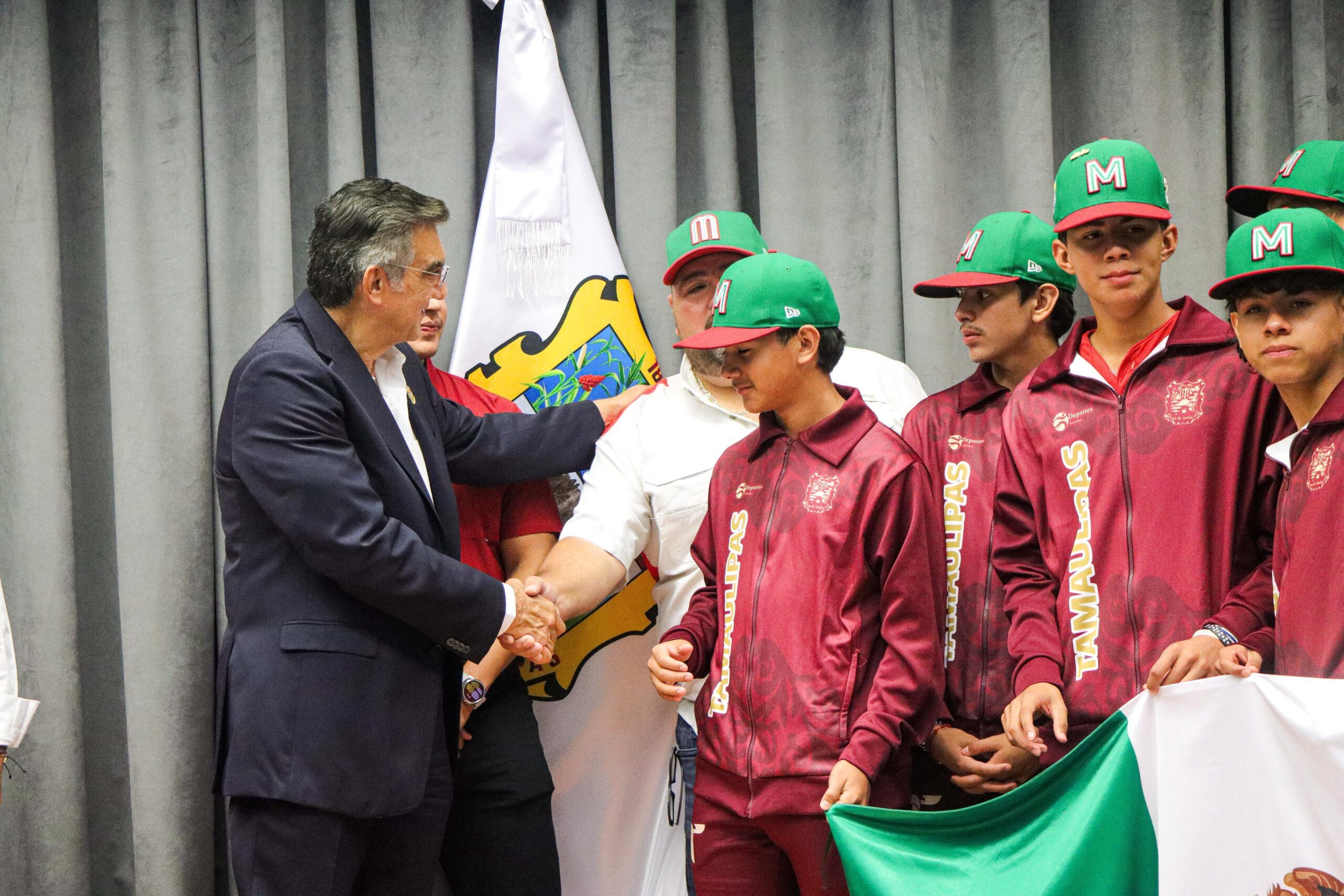 Junio 30 de 2025, Ciudad Victoria, Tamaulipas.- El gobernador de Tamaulipas, Américo Villarreal Anaya, encabezó la ceremonia de abanderamiento del equipo de la Liga Villa del Refugio de Matamoros A.C., escuadra campeona nacional de la categoría Junior, perteneciente al programa oficial de Little League (Williamsport) y con ello dicho equipo representará a México en el Torneo Latinoamericano, a celebrarse en Guatemala a partir del próximo sábado.