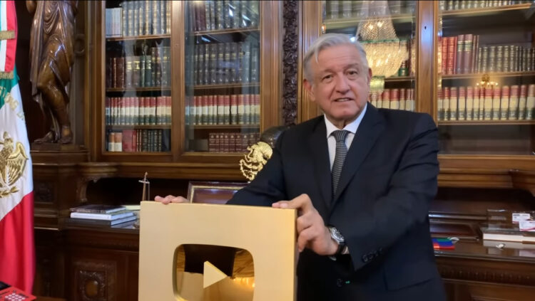 El 21 de junio de 2019, el presidente López Obrador agradeció a YouTube por el botón de oro por un millón de suscriptores en su canal.