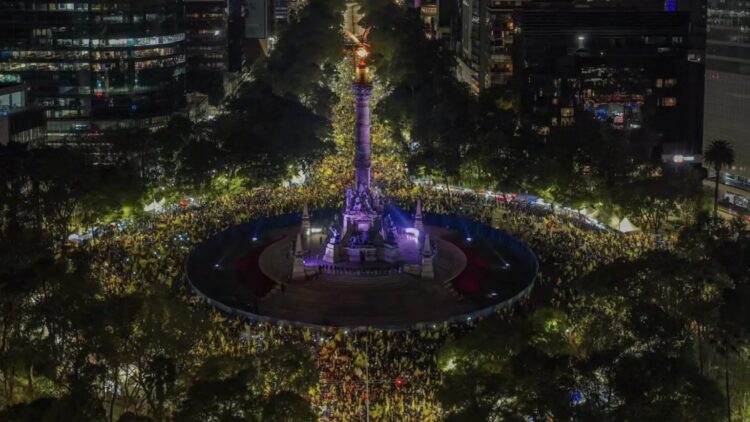 Miles de hinchas de las Águilas del América celebraron este domingo el decimocuarto título de liga del equipo, con una fiesta en el Ángel Independencia de la Ciudad de México.