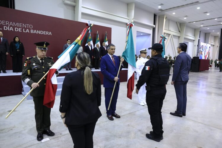 “En nuestra enseña nacional se contiene un proyecto de futuro con un horizonte abierto a las transformaciones que hoy estamos construyendo, gracias a que hemos restaurado la confianza de la sociedad en un gobierno humanista, promotor de los derechos humanos, honesto y que cumple y hace cumplir la ley, con un renovado sentido de patriotismo y responsabilidad”, expresó el gobernador durante una emotiva ceremonia cívica en el Polyforum de esta capital, en la que entregó la bandera a la escolta de la Guardia Estatal de Tamaulipas.