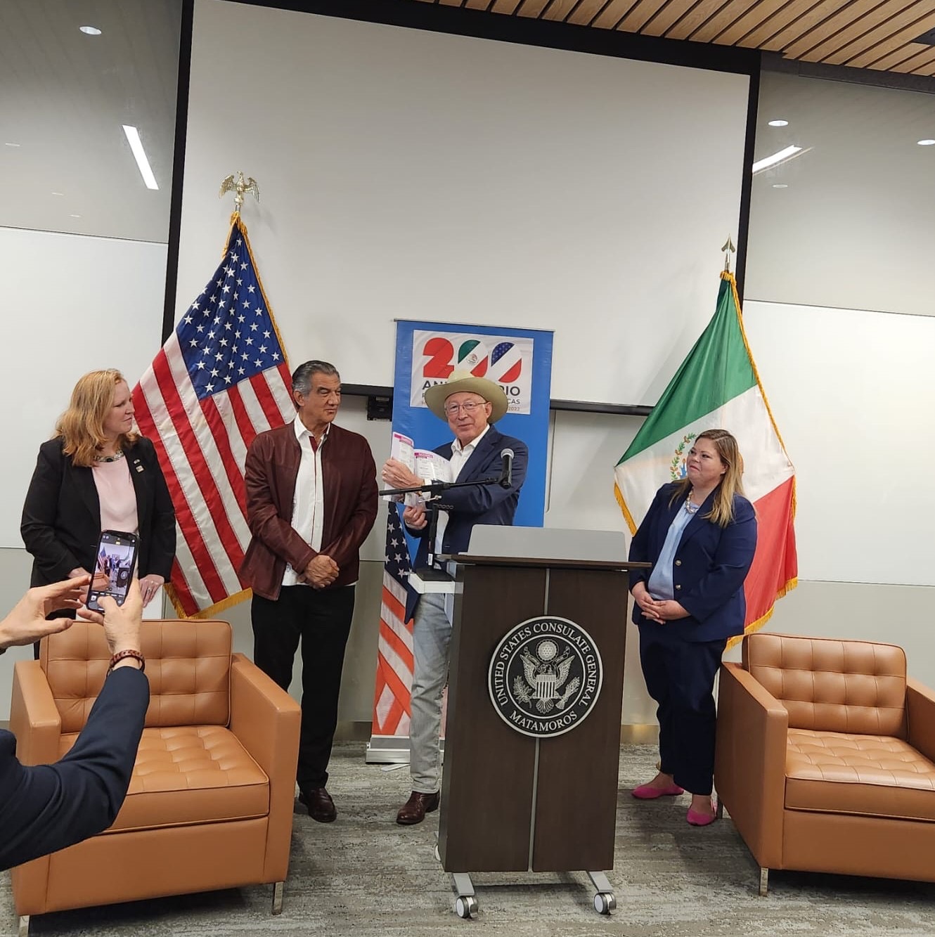 Al reunirse esta mañana en las oficinas del Consulado de Estados Unidos en Matamoros y acompañado por la cónsul en esta ciudad, Brianna Powers, el embajador Ken Salazar reconoció el trabajo del gobernador Villarreal Anaya e incluso destacó la celebración del festival cultural que se lleva a cabo en el Estado, lo cual consideró como una “señal positiva y muy buena”.