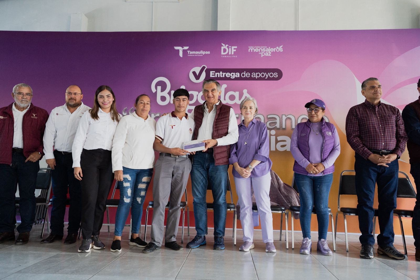 En una visita de trabajo a este municipio, el gobernador Américo Villarreal Anaya y la presidenta del Sistema DIF Tamaulipas, la doctora María de Villarreal, reafirmaron su compromiso con las familias de San Nicolás mediante la entrega de diversos apoyos solicitados previamente en la brigada “Transformando Familias”, entre los que destacan aparatos funcionales, enseres domésticos, herramientas de trabajo y equipamiento para el hogar y el emprendimiento.