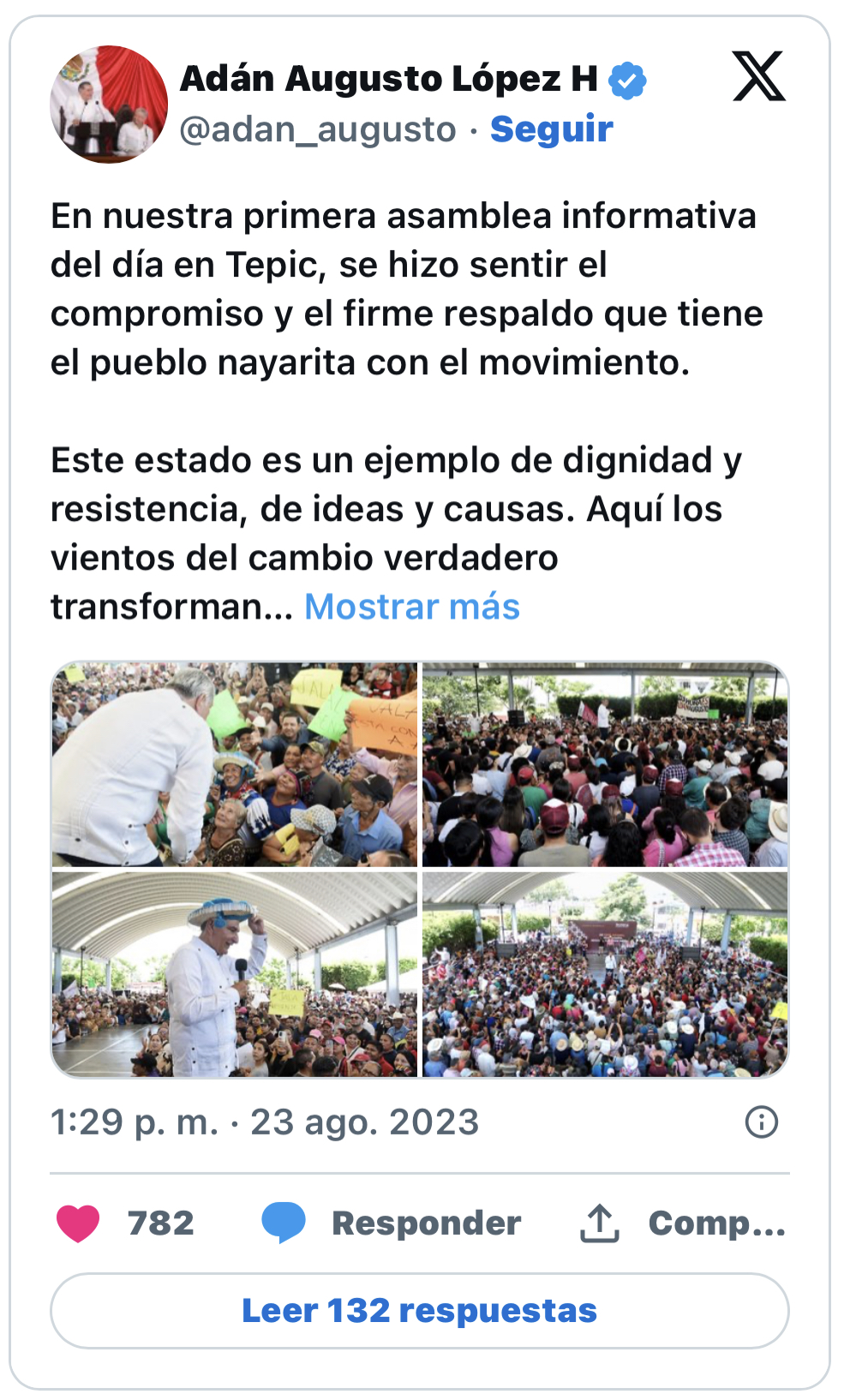 “No nos van a detener. Va a haber libros de texto gratuitos para todos los niños y niñas de México. Vamos a volver a derrotar a los conservadores, a los que no quieren al pueblo y que pregonan que hay que quemar los libros de texto gratuitos”, aseguró el aspirante a la Coordinación Nacional para la Defensa de la Cuarta Transformación ante más de tres mil personas que asistieron a la Asamblea informativa que encabezó el tabasqueño en esta capital de Nayarit.