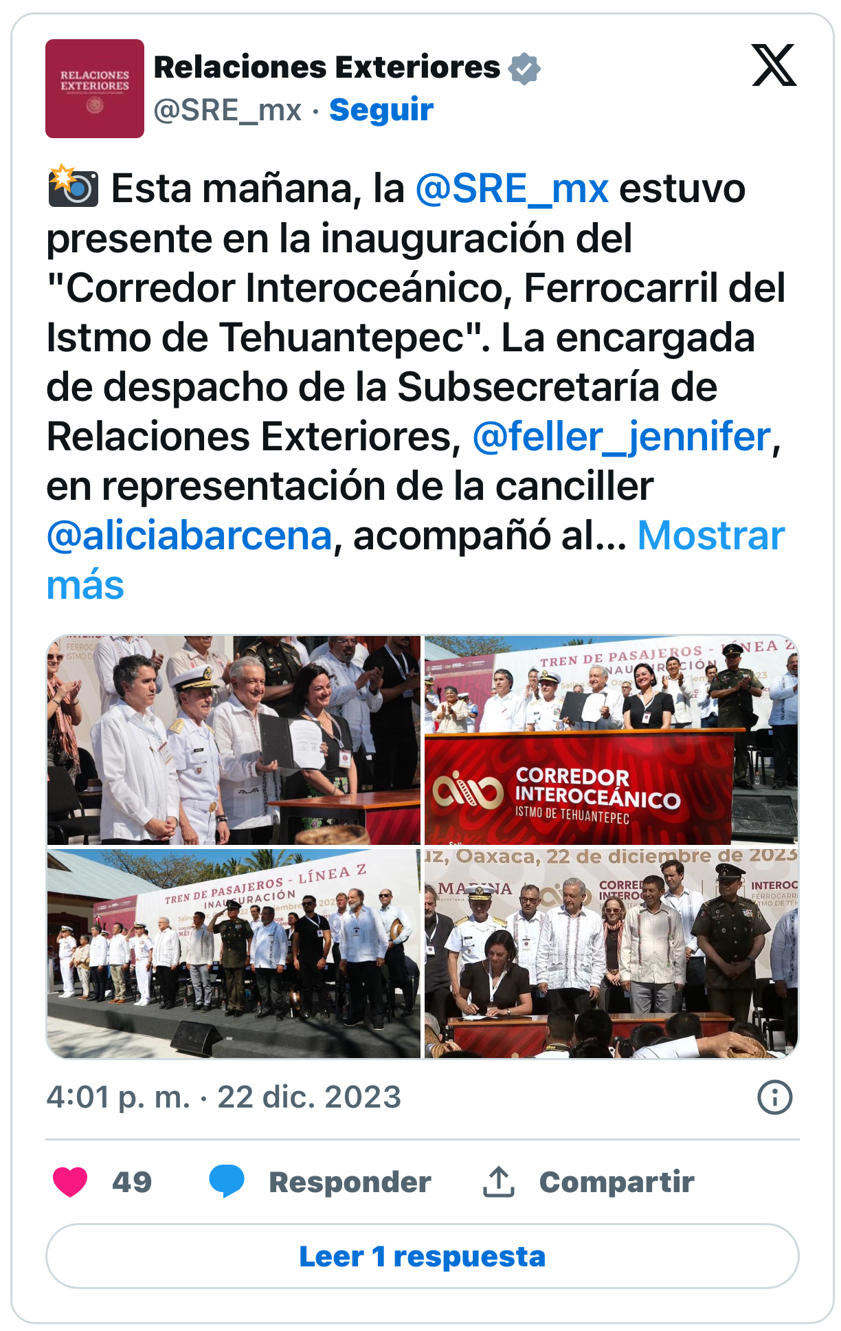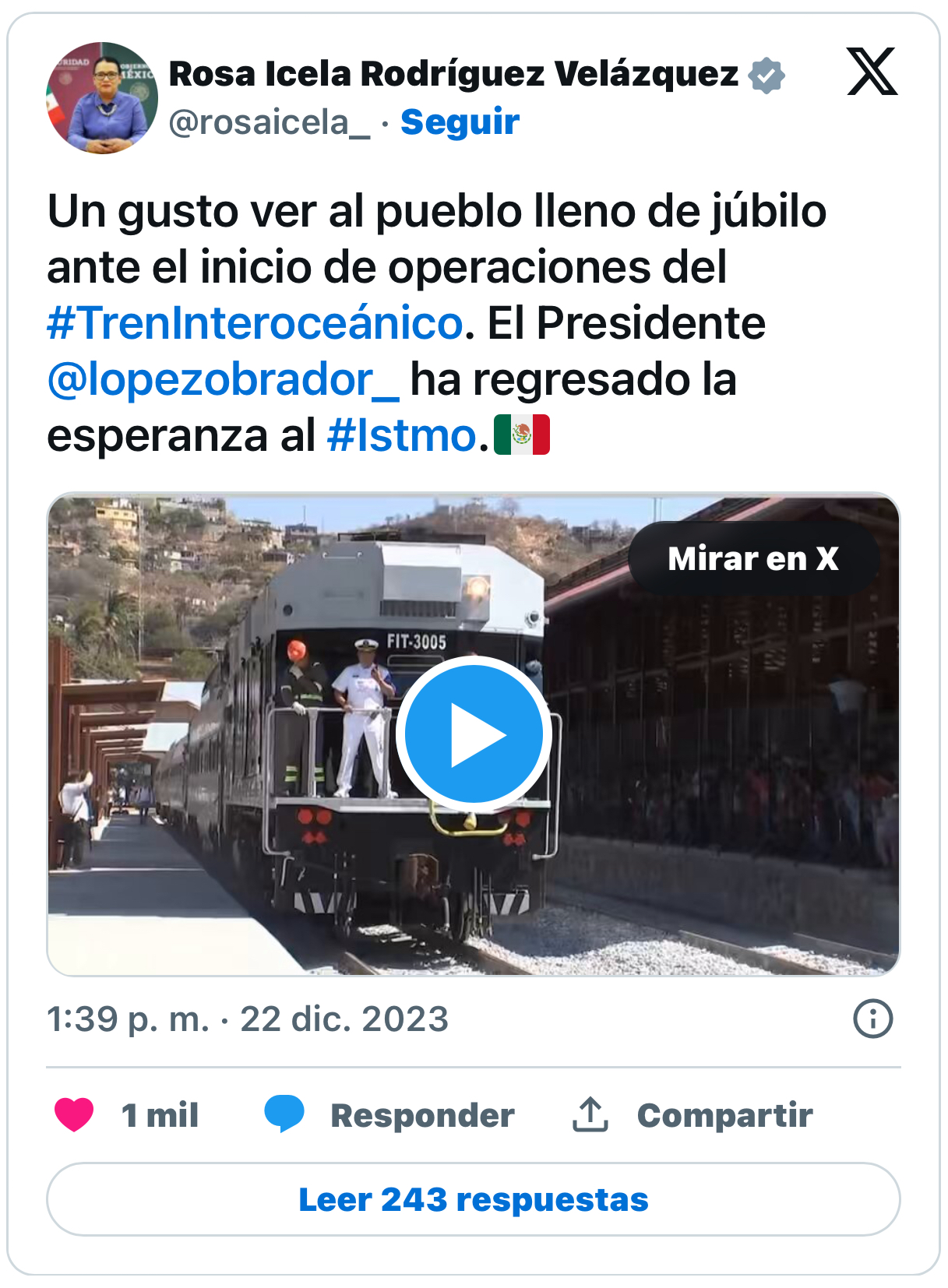Este viernes arrancó el viaje inaugural del tren de pasajeros del Istmo de Tehuantepec, que conectará al puerto de Salina Cruz, Oaxaca, con el de Coatzacoalcos, Veracruz.