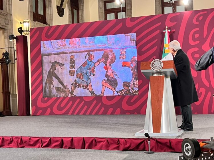 De acuerdo con el portal El Quintana Roo Mx el mandatario compartió imágenes de cómo lucen los murales debajo de la pirámide de Calakmul luego de más de 2 mil 400 años. https://elquintanaroo.mx/asi-lucen-los-murales-de-la-piramide-de-calakmul-luego-de-mas-de-2-mil-400-anos/