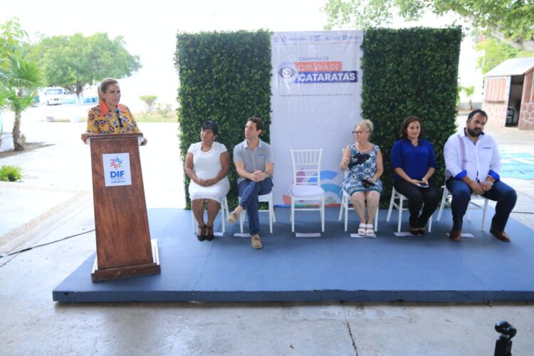 En evento realizado en instalaciones del DIF, la edil aseguró que la campaña de cataratas 2022 se llevará a cabo del 25 al 30 de julio, con el apoyo de 16 médicos españoles que dejaron para otra ocasión, sus vacaciones, por un bien común a favor de 120 personas afectadas con cataratas y 50 pterigión, quienes serán operadas en el Hospital Costamed, en Puerto Morelos.