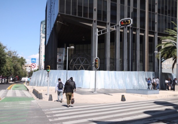 Los monumentos de mármol frente a Palacio de Bellas Artes están cubiertos de plástico transparente y resguardados por elementos de seguridad privada, mientras que edificios como el Monte de Piedad tienen vallas metálicas a su alrededor.
