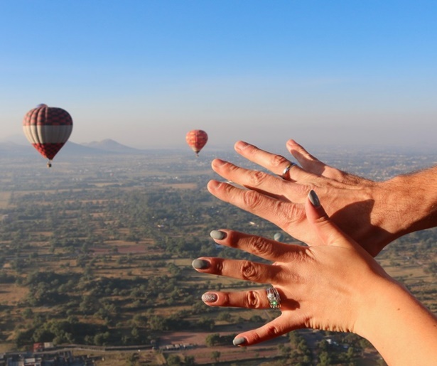 Las nubes atestiguaron un momento que quedará en su memoria toda la vida ya que sellaron su unión en un paseo en globo aerostático en la zona arqueológica de Teotihuacán.