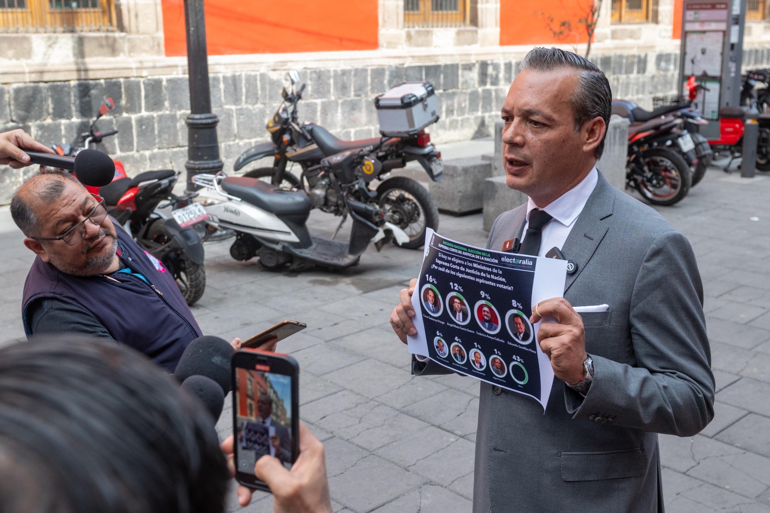 Esta mañana, el candidato a ministro de la Suprema Corte de Justicia de la Nación, César Gutiérrez Priego ofreció una conferencia de prensa ante medios de comunicación en el Centro Histórico de la Ciudad de México.