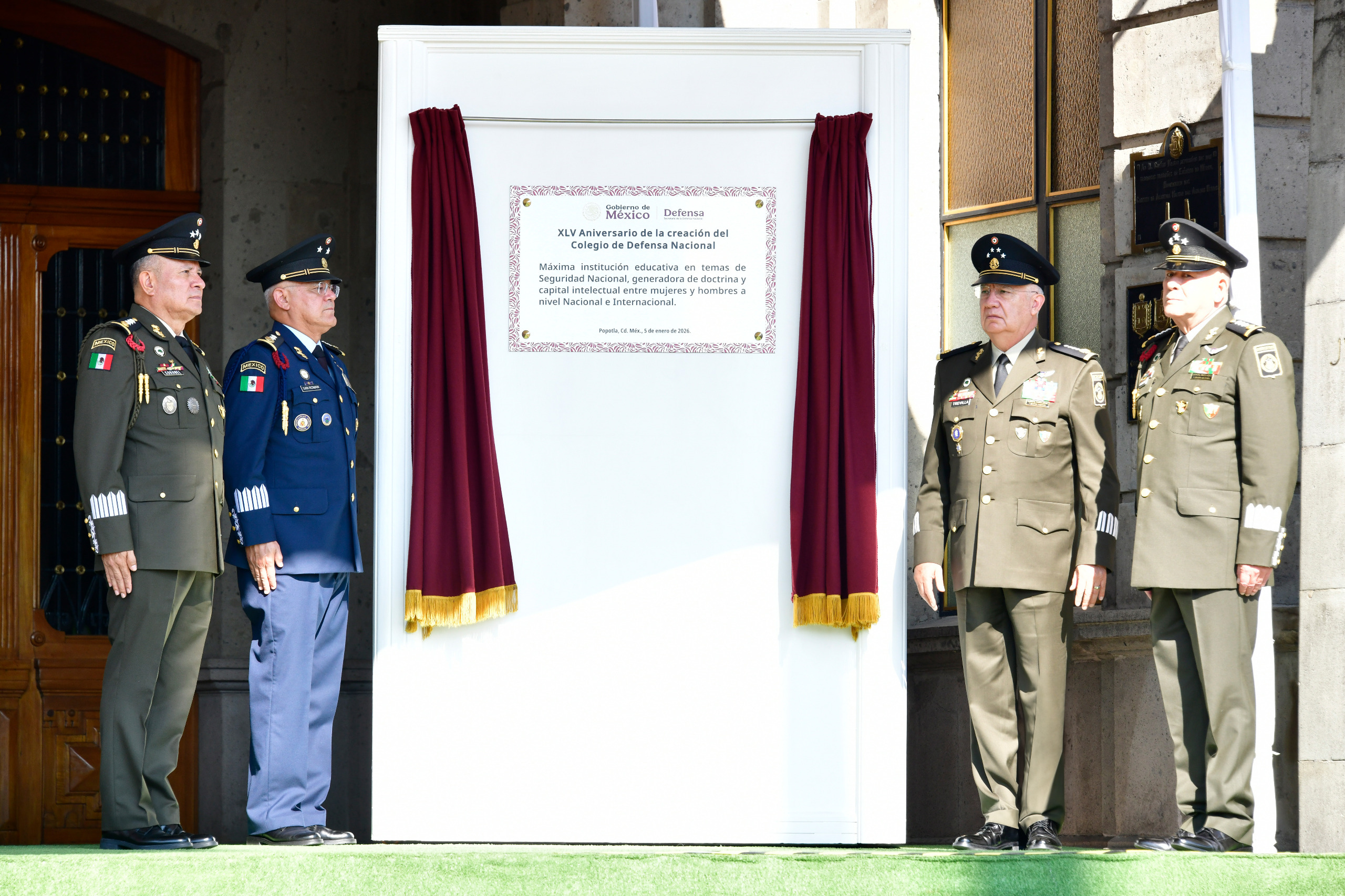 Como parte central de la ceremonia, el general Trevilla Trejo, acompañado por autoridades de la Secretaría de la Defensa Nacional, realizó la develación de una placa conmemorativa, cuya inscripción reconoce al CODENAL como una institución generadora de doctrina y capital intelectual con alcance nacional e internacional.
