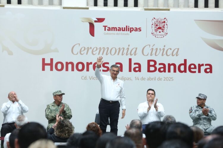 Al presidir la ceremonia cívica de honores a la bandera este lunes, en la explanada interior del Palacio de Gobierno, acompañado por los titulares de los Poderes Legislativo y Judicial, el gobernador destacó que Tamaulipas sigue adelante, contando en todo momento con el gran respaldo de la presidenta de México, Claudia Sheinbaum Pardo.