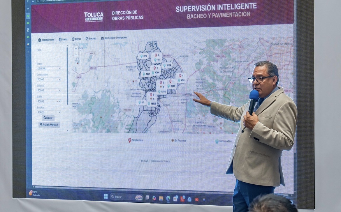 Durante la conferencia La Toluqueña, el Presidente Municipal explicó que derivado de que la carpeta asfáltica se encuentra en malas condiciones y se tenía un registro 180 mil baches sumados a los que se abren por la temporada de lluvias, el Gobierno municipal mantiene acciones permanentes para lograr que, en poco más de un año, se realice cerca del 45% de los trabajos que se llevaron a cabo en toda la pasada administración.