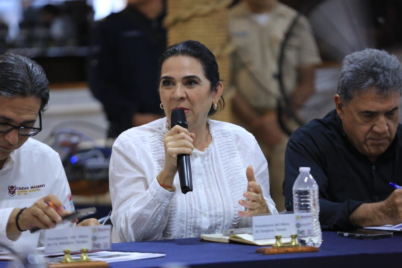 En la reunión, la presidenta municipal de Tampico, Mónica Villarreal, y los alcaldes de Madero, Erasmo González, y de Altamira, Armando Martínez, informaron las condiciones y equipamiento de los refugios temporales para albergar a la población que lo requiera y los recorridos que se realizan para informar de manera directa a la población.
