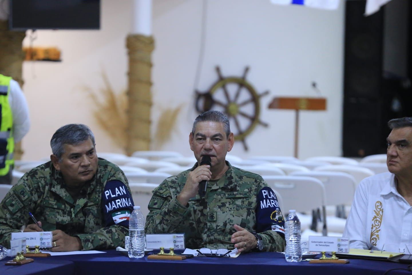 También participaron en esta mesa de coordinación: el comandante de la Primera Región Naval, Carlos Eduardo L’Eglise Escamilla; el comandante de la Primera Zona Naval, Miguel Rivas Hernández; y el comandante de la 48 Zona Militar, Enrique García Jaramillo; así como el secretario general de Gobierno, Héctor Villegas González; el secretario de Recursos Hidráulicos, Raúl Quiroga Álvarez, el coordinador estatal de Protección Civil, Luis Gerardo González de la Fuente, además de funcionarios y representantes de dependencias las federales participantes en las operaciones.