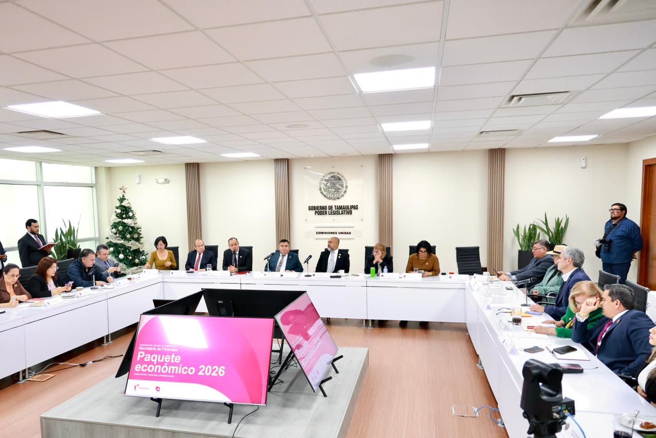 El Paquete Económico 2026 consolida la política humanista del gobernador Américo Villarreal Anaya al priorizar el bienestar de las familias, la estabilidad financiera y la inversión pública para fortalecer la transformación del estado, señaló el secretario de Finanzas, Carlos Irán Ramírez González, al presentarlo ante el diputado Isidro Jesús Vargas Fernández, titular de la Comisión de Finanzas, así como ante la Comisión de Estudios Legislativos Segunda del Congreso del Estado.