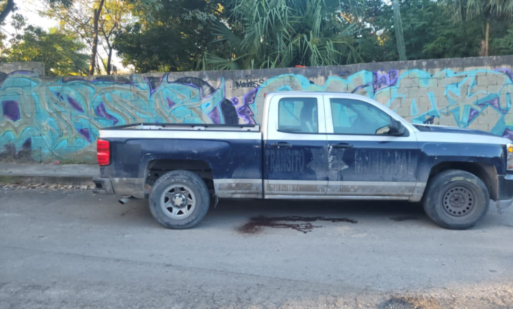 En la zona, peritos de la Fiscalía General del Estado se encuentran procesando el vehículo, que estaba adscrito a dicha dependencia municipal.