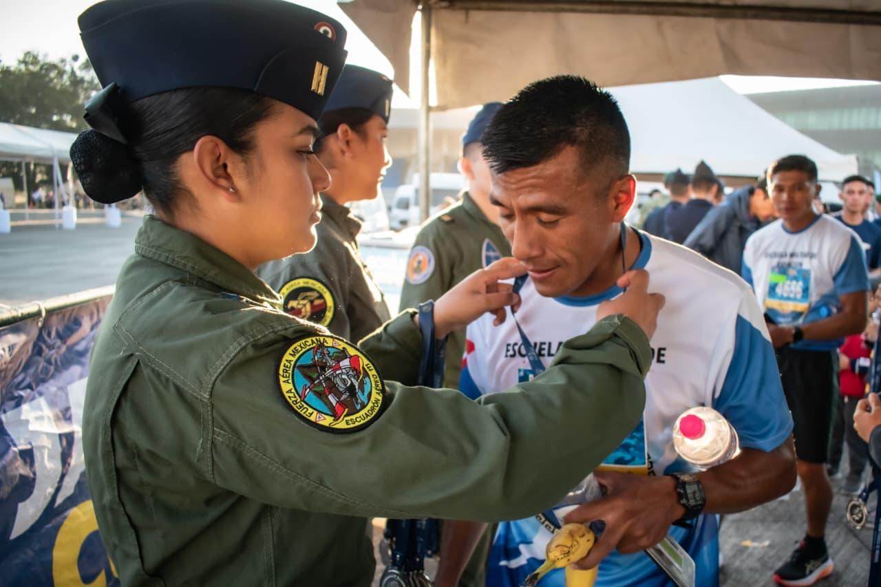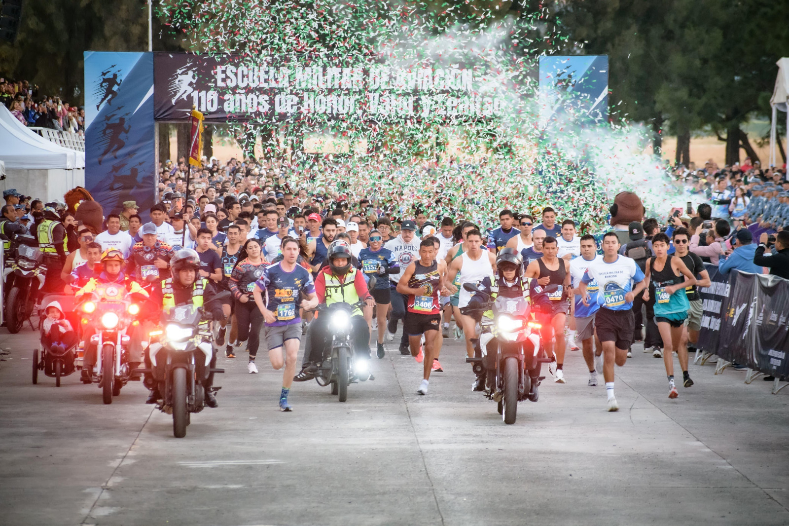 La jornada inició con entrega de paquetes, módulos informativos, actividades interactivas y una exposición de aviación militar. A las 07:30 horas arrancó la carrera y, a las 09:30, comenzaron las maniobras aéreas con aeronaves de entrenamiento, saltos de caída libre y demostraciones con helicópteros MI-17, B-407 y UH-60.