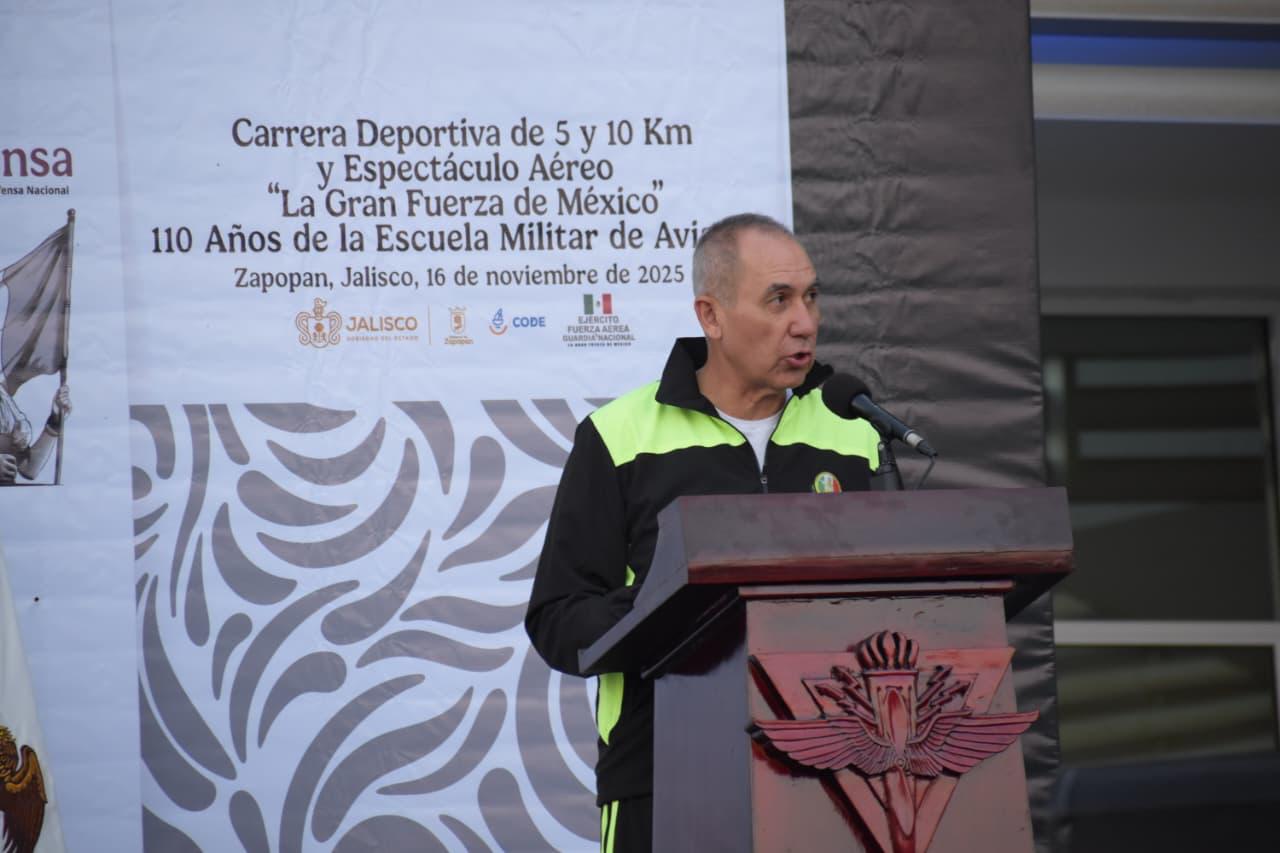La mañana del 16 de noviembre, el Ejército, la Fuerza Aérea y la Guardia Nacional llevaron a cabo la carrera deportiva y espectáculo aéreo “La Gran Fuerza de México” en el Colegio del Aire, Zapopan, como parte del 110 aniversario de la Escuela Militar de Aviación.