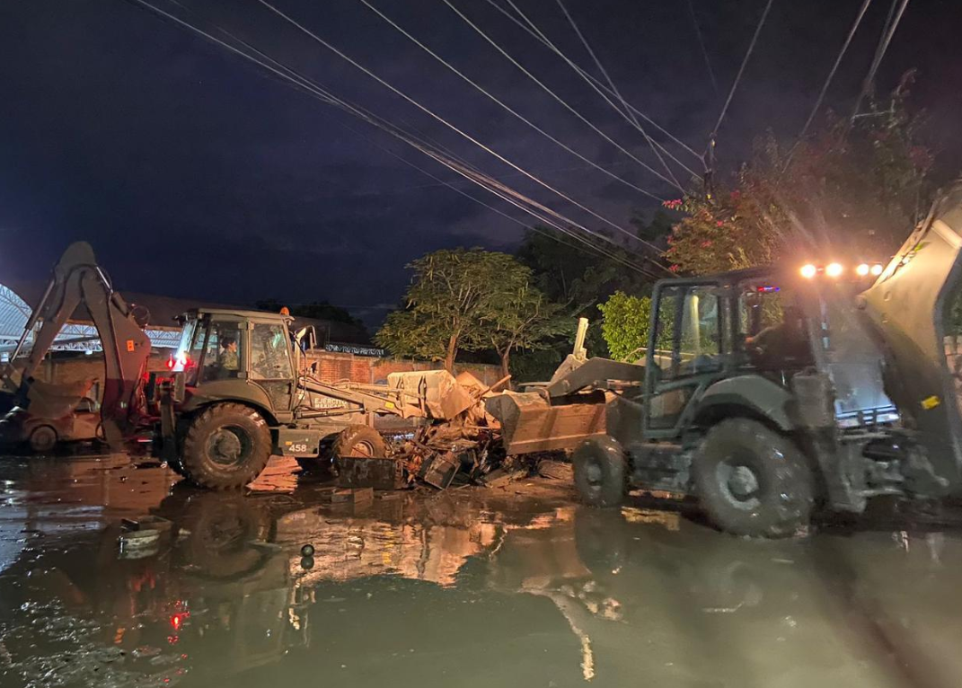 En San Luis Potosí, 800 militares apoyan a seis municipios con la distribución de más de 24,000 despensas, limpieza de calles y desazolve de más de 500 viviendas afectadas.