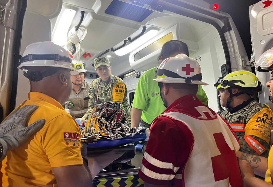Posteriormente, integrantes de la Fuerza en Situación de Alerta (FUSA) de la III Región Militar llevaron a cabo su evacuación aérea a bordo de un helicóptero UH-60 Black Hawk de la Fuerza Aérea Mexicana, con destino al Hospital General de Mazatlán, donde continuará su recuperación.