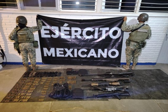De acuerdo con la dependencia, los elementos efectuaban patrullajes de vigilancia y reconocimientos terrestres y aéreos cerca del poblado de Huixiopa, donde localizaron tres fusiles AK-47 calibre 7.62 mm, dos fusiles Barrett calibre .50, quince cargadores, 508 cartuchos de distintos calibres y diverso equipo táctico.