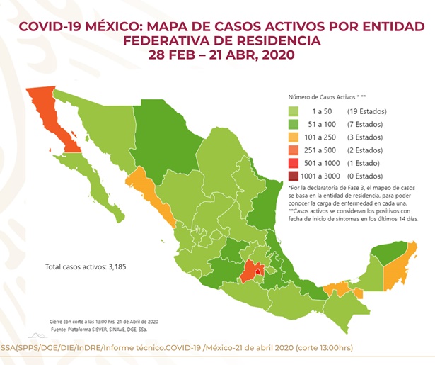Ciudad de México, 21 de abril de 2020 (NACIÓN 14).- El Director General de Epidemiología de la Secretaría de Salud, José Luis Alomía, informó que al corte de este martes 21 de abril, aumentó a nueve mil 501 el número de casos confirmados y a 857 los muertos por el brote de COVID-19 en México.