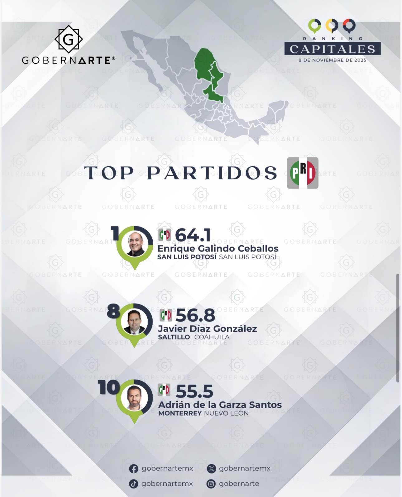 Es el alcalde de la capital potosina, Enrique Galindo Ceballos de extracción priísta el presidente municipal de una capital mexicana el mejor evaluado por su población, según lo revela la última encuesta de Gobernarte.