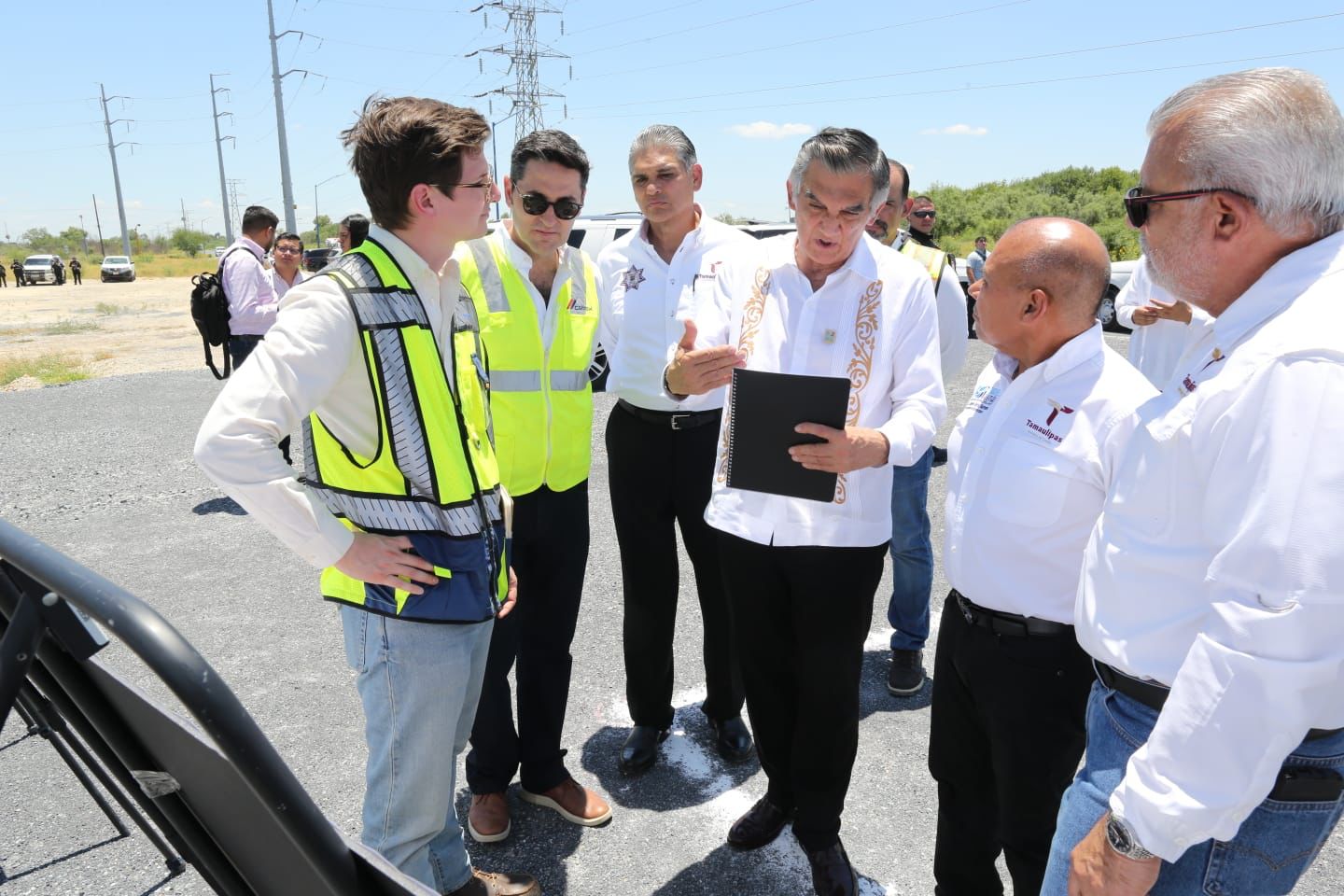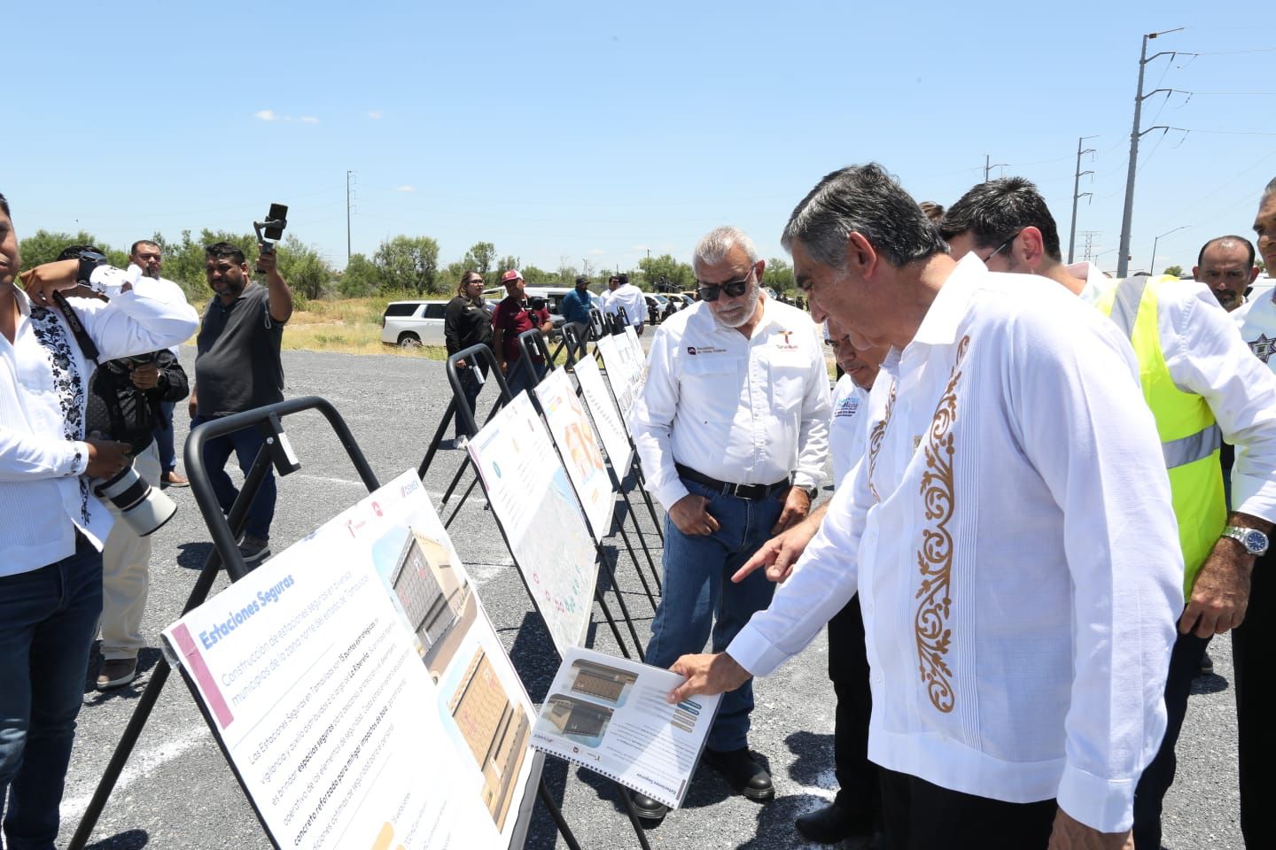 Posteriormente, el gobernador Villarreal Anaya se trasladó al punto donde se ubicará la Estación Segura de Miguel Alemán, para supervisar el inicio de los trabajos de su construcción, y después al punto donde se edificará la Estación Segura Reynosa Norte.