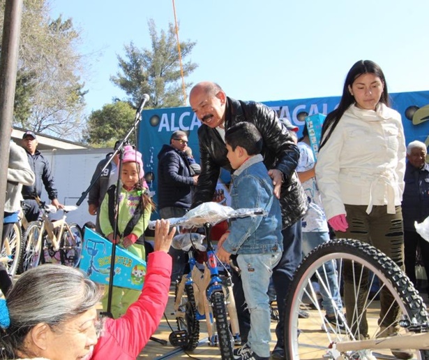 Más tarde el alcalde y su equipo se trasladaron al festejo de Día de Reyes en la colonia Agrícola oriental para entregar 80 bolsas biodegradables con dulces y juguetes para niños y niñas, 40 bicicletas de las rodadas 26 y 12, 20 skcooters, 20 patines de cuatro ruedas así como 40 juegos de química y alquimia.