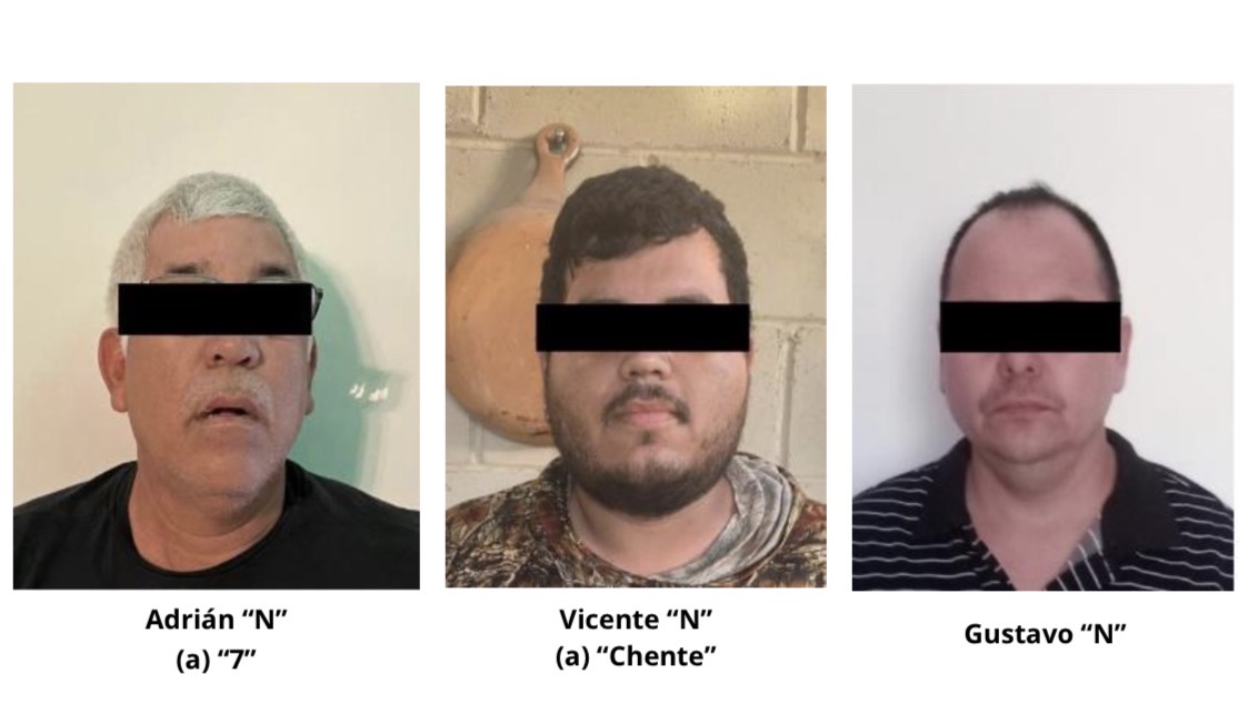 Los detenidos fueron identificados como Adrián “N”, alias “7”; Vicente “N”, alias “Chente”; y Gustavo “N”, quienes presuntamente forman parte de la facción conocida como “Los Mayos”.