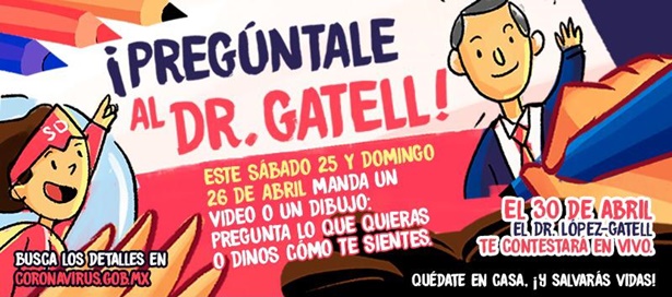 Ciudad de México, 24 de abril de 2020 (NACIÓN 14).- Para el próximo 30 de abril, Día del Niño, informaron las autoridades sanitarias que se ha preparado un evento especial llamado ‘Pregúntale al doctor Gatell’ donde el funcionario responderá las inquietudes de los niños y niñas sobre la pandemia del coronavirus.
