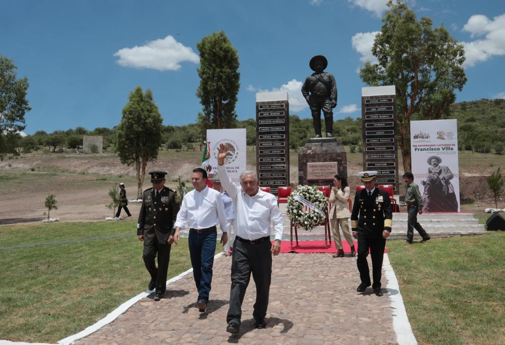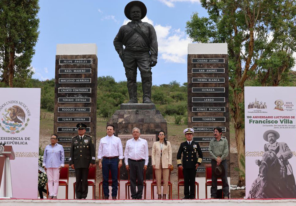 El presidente de México, Andrés Manuel López Obrador, conmemoró en San Juan del Río, en el estado de Durango, el 100 aniversario luctuoso del revolucionario Francisco Villa, uno de los héroes más polémicos de la historia del país.