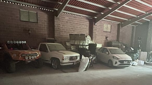 Derivado de lo anterior, personal de esta Institución logró el aseguramiento de más de 30 vehículos de gama alta y un aproximado de diez armas largas, 16 cohetes, cartuchos y cargadores de diversos calibres, equipo táctico, munición a granel y miras telescópicas, asimismo, se rescataron especies exóticas, tales como un jaguar, tres monos, cinco guacamayas, cuatro caballos y aproximadamente 900 gallos.