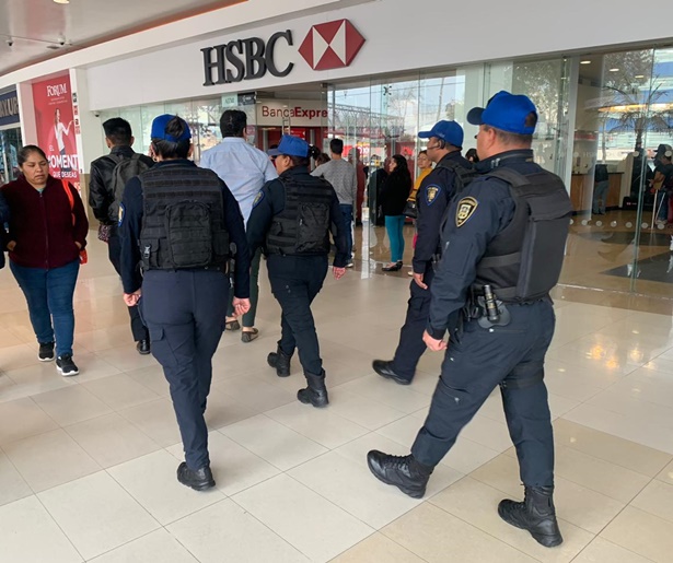 Conforme a lo instruido, los efectivos de la SSC refuerzan la vigilancia de instancias gubernamentales, empresas privadas, sucursales bancarias, plazas comerciales, zonas restauranteras, tiendas departamentales, entre otros lugares donde se registran movimientos monetarios.