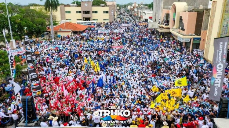 Más de 15 mil ciudadanos del municipio de Aldama se concentraron esta tarde en la plaza principal para escuchar el mensaje del candidato de la coalición “Va por Tamaulipas” al gobierno del estado, César  “Truko” Verástegui de quien aseguraron se sienten “orgullosos” porque están seguros de que será el próximo gobernador.