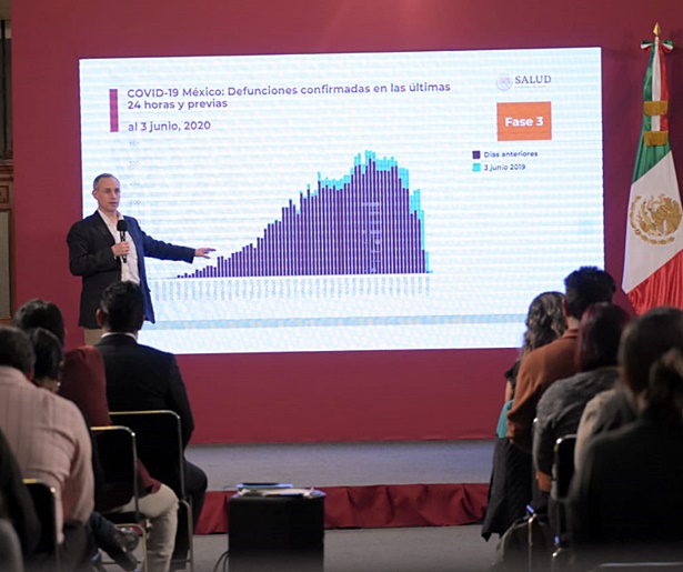 Al respecto, el subsecretario de Salud, Hugo López Gatell explicó que el incremento de las defunciones que se dieron a conocer este miércoles, se debe a que no se tenía confirmados los resultados, los cuales se tienen desde el 25 de marzo hasta el cierre de este 3 de junio.