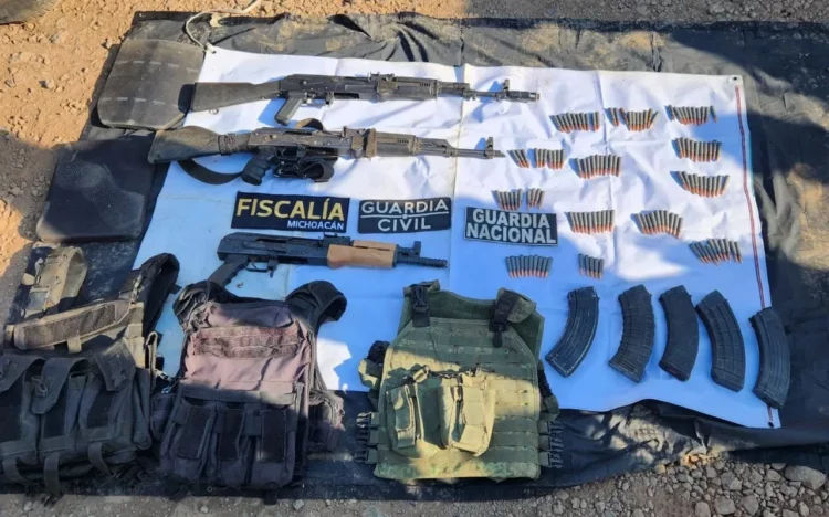 Agentes de la Guardia Civil y del Ejército mexicano desplegaron un operativo que permitió la captura de 15 hombres armados con rifles de asalto, pistolas y chalecos antibalas.