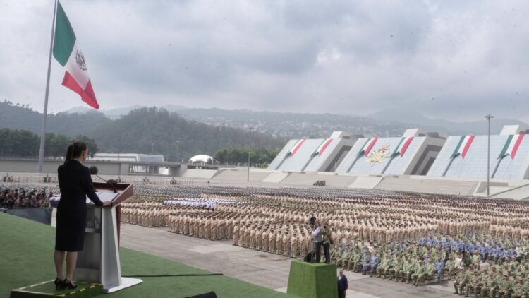 “Seremos perseverantes en la lucha contra el clasismo, el racismo, el machismo y cualquier forma de discriminación. Es decir, haremos de México un país todavía más próspero, justo e igualitario, y seguiremos engrandeciendo la dignidad y el orgullo de ser mexicanas y mexicanos. Fortaleceremos la Guardia Nacional como parte de la Secretaría de la Defensa Nacional y les convocaré para seguir apoyando en la construcción de grandes proyectos estratégicos como los trenes de pasajeros hacia el norte del país y los nuevos puertos. Son y van a seguir siendo los tiempos de las hazañas pacíficas”, manifestó.