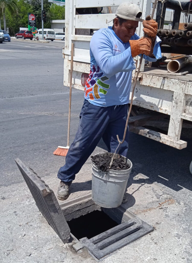 Diversos operativos de limpieza y desazolve realiza el gobierno municipal, encabezado por la presidenta Lili Campos, a través de la Secretaría de Servicios Públicos, a los cuatro mil 398 pozos de absorción que tiene el municipio, con la finalidad de prevenir posibles inundaciones.