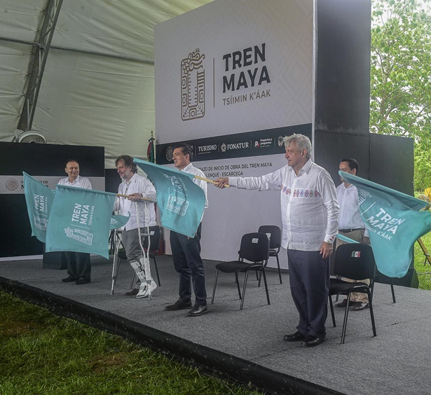 Ciudad de México, 4 de junio de 2020 (NACIÓN 14).- El presidente Andrés Manuel López Obrador dio el último banderazo de inicio de construcción del Tren Maya que correrá de Palenque, Chiapas a Escárcega, Campeche, tramo que generará 20 mil empleos directos.