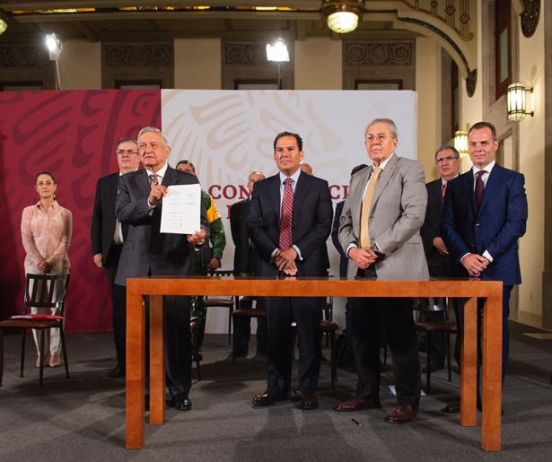Ciudad de México, 13 de abril de 2020 (NACIÓN 14).- El presidente Andrés Manuel López Obrador firmó un acuerdo inédito con la Asociación Nacional de Hospitales Privados y el Consorcio Mexicano de Hospitales “con el propósito de sumar recursos, voluntades y ayudarnos mutuamente a enfrentar esta epidemia de coronavirus. Es algo realmente importante, trascendente, el que el sector público y el sector privado se unan en esta crisis de salud”.