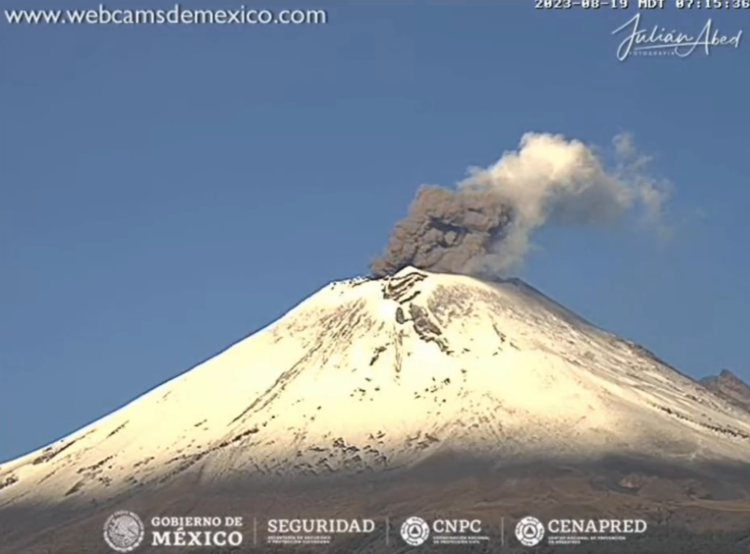 La dependencia detalló que, de acuerdo con el reporte del monitoreo del volcán Popocatépetl, se observa contenido de ceniza volcánica que se desplaza en dirección Noroeste.