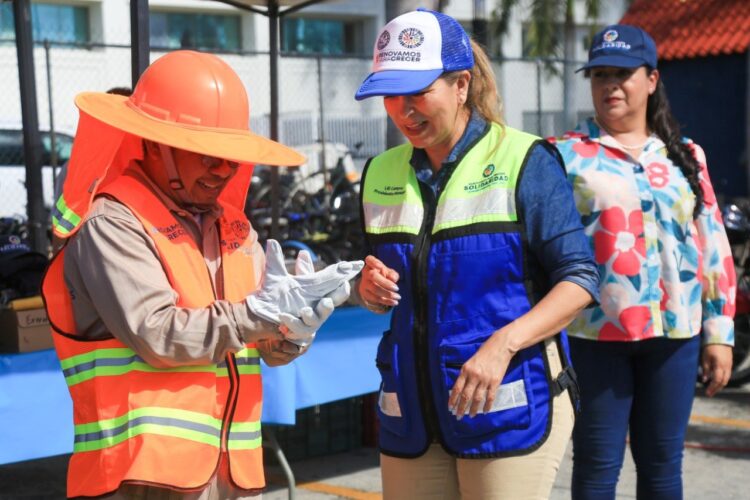 La presidenta Lili Campos y el secretario Benny Millán entregaron uniformes para 55 colaboradores de las direcciones de Alumbrado Público y Normatividad y Saneamiento Ambiental, con el objetivo de hacer eficiente y garantizar su seguridad al momento de realizar su labor.