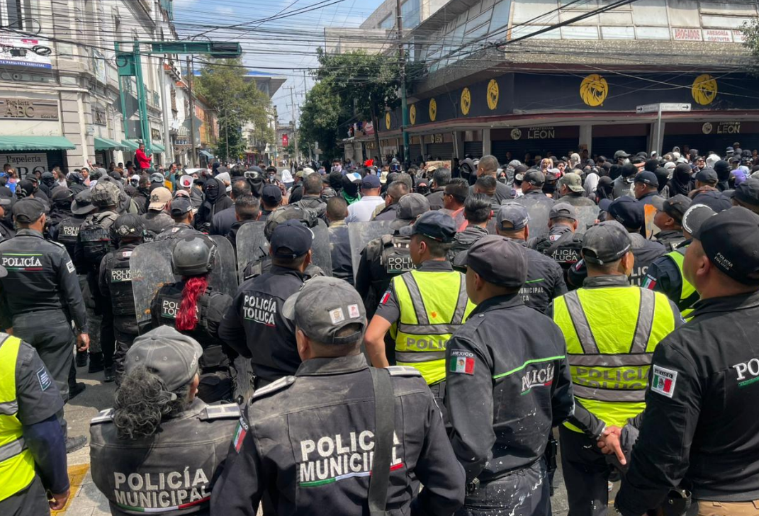 Ante la presencia de manifestantes que realizaron actos de vandalismo en el centro de la ciudad, elementos de la Dirección General de Seguridad y Protección de Toluca mantienen presencia preventiva en la zona, con el objetivo de proteger a la ciudadanía, los comercios y el patrimonio público.