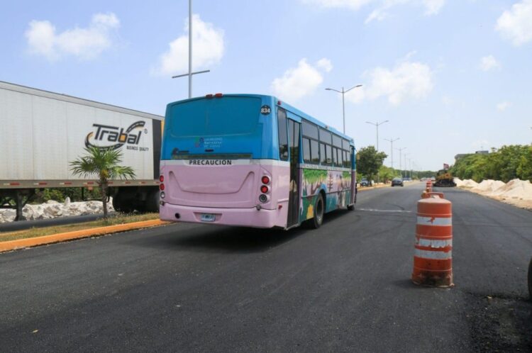 La repavimentación de la avenida 115 entre Paseo Central y Avenida Constituyentes continúa avanzando, por ello, este día para agilizar la circulación vial, el gobierno de Solidaridad que preside Lili Campos, abrió un carril de norte a sur sobre ese tramo.