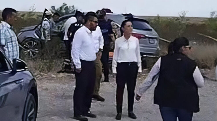 Se accidenta auto del convoy de Sheinbaum en Coahuila; ella se baja a ayudar