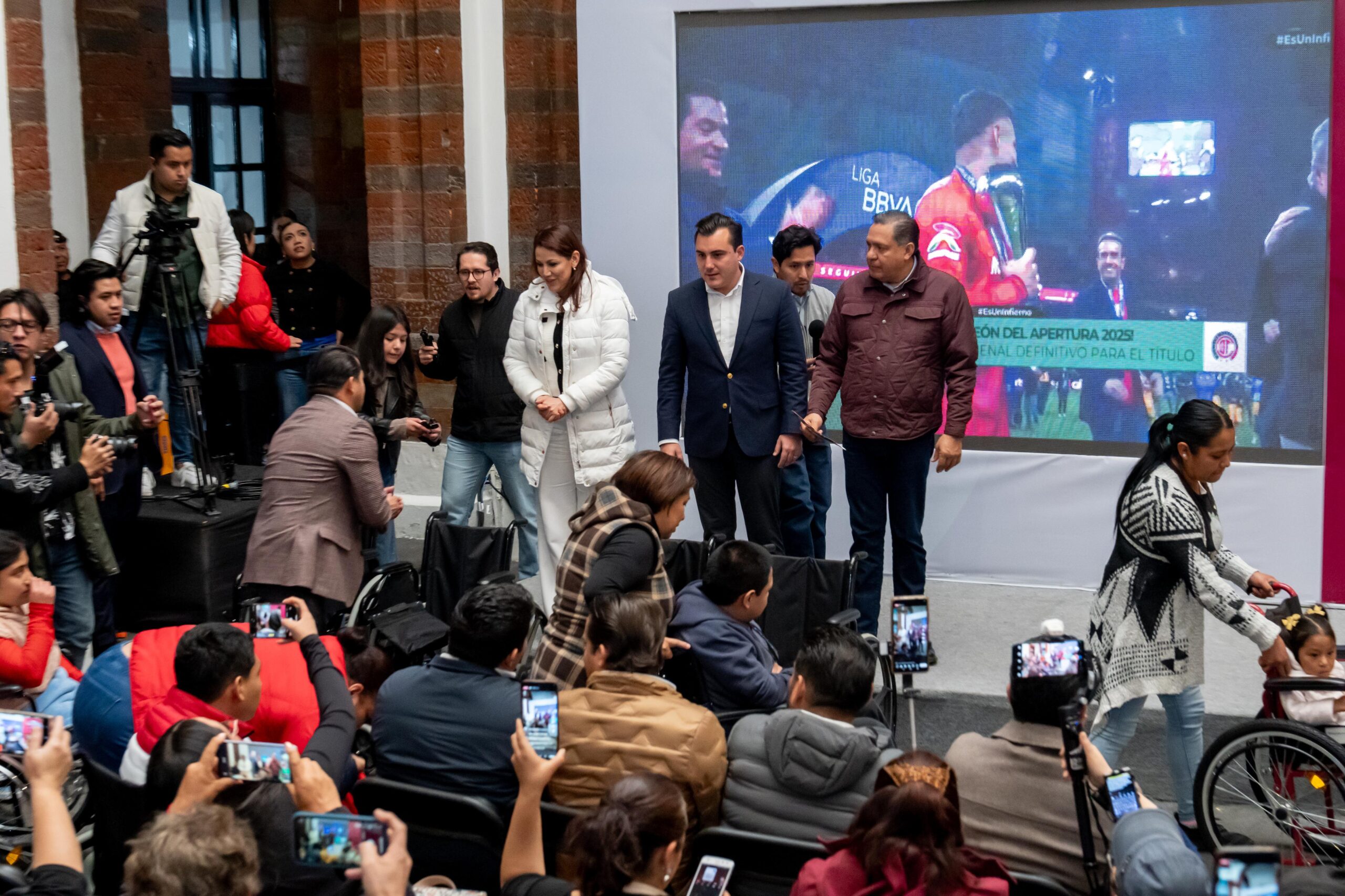 Acompañado por la Presidenta Honoraria del Sistema Municipal DIF, Rocío Pegueros, el primer edil de Toluca reconoció que el triunfo del Bicampeonato obtenido por los Diablos Rojos permitió también consolidar una capital inclusiva, pues con dinero propio compró cinco abonos dobles a fin de que se rifen entre los beneficiados para que puedan disfrutar de los partidos del equipo de casa.